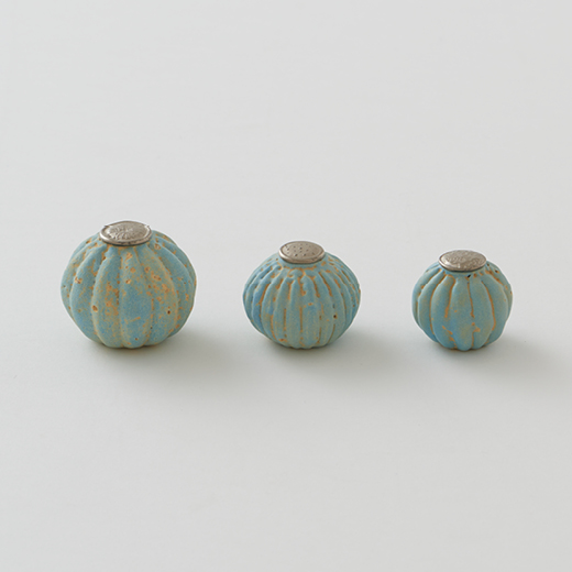 要するにこれらは、陶磁器というものが常套的に守備範囲としてきた「壺」や「碗」や「皿」や「瓶」や「杯」ではなく、日常のひそやかな場所で息をしているものたちのために、工夫され、生まれてきたかたちです。そのささやかな幸せの気配にご注目ください。