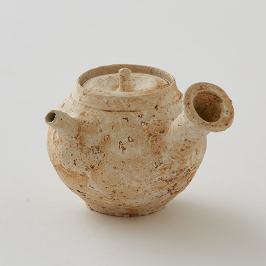 備前焼は日本六古窯のひとつ。古墳時代の須恵器に端を発すると言われ、大陸の影響を受けない独自の風姿をもつ陶磁器です。釉薬を一切使わず、堅く焼き締められた肌合いや、焼成時に降りかかった灰が自然釉となる有機的な文様に特徴があります。地味な佇まいですが、静謐さの中の奥深い味わいがあり、桃山時代には茶陶として人気を博しました。その後は安価な磁器の台頭によって日常的な水瓶や擂鉢、酒徳利の生産に戻っていましたが、昭和にはいって金重陶陽が茶陶の伝統を蘇生させ、重要無形文化財「備前焼」保持者となりました。