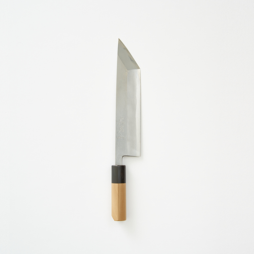 刃物は、使いみちや、鍛冶の工夫、使う人の好みに寄り添うことで、あらゆる形状を得てきました。和釘づくりから発生した燕三条の鍛冶産業は、全国の農村、漁村からの細かな注文に応え、その技術を磨いています。ここでは中でも暮らしに近い「包丁」に対象をしぼり、産地燕三条のものづくりから、日本の刃物のカタチを浮かび上がらせます。