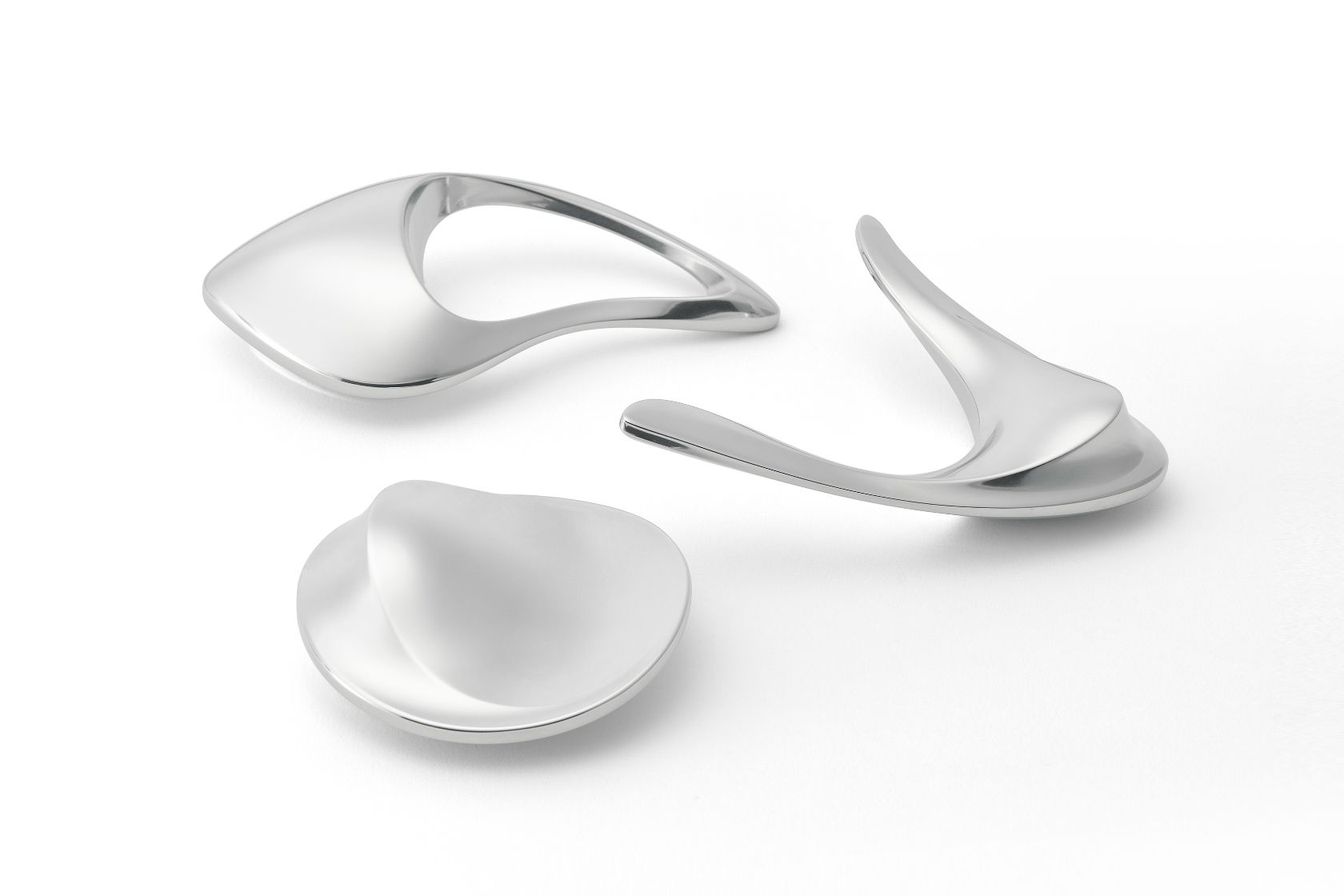 高度な研磨技術で磨き上げられたオブジェ。これで手をほぐしたり、体表をこすりあげることで血行がよくなる、という健康グッズだ。ヌメヌメとした輝きに誘われ、人の唇のような温かな感触を期待して触ると、金属の冷たさが指先に。掌に持つとアルミの軽さに意表をつかれる。この作品、見た目を幾重にも裏切るしたたかさがある。 松本哲夫