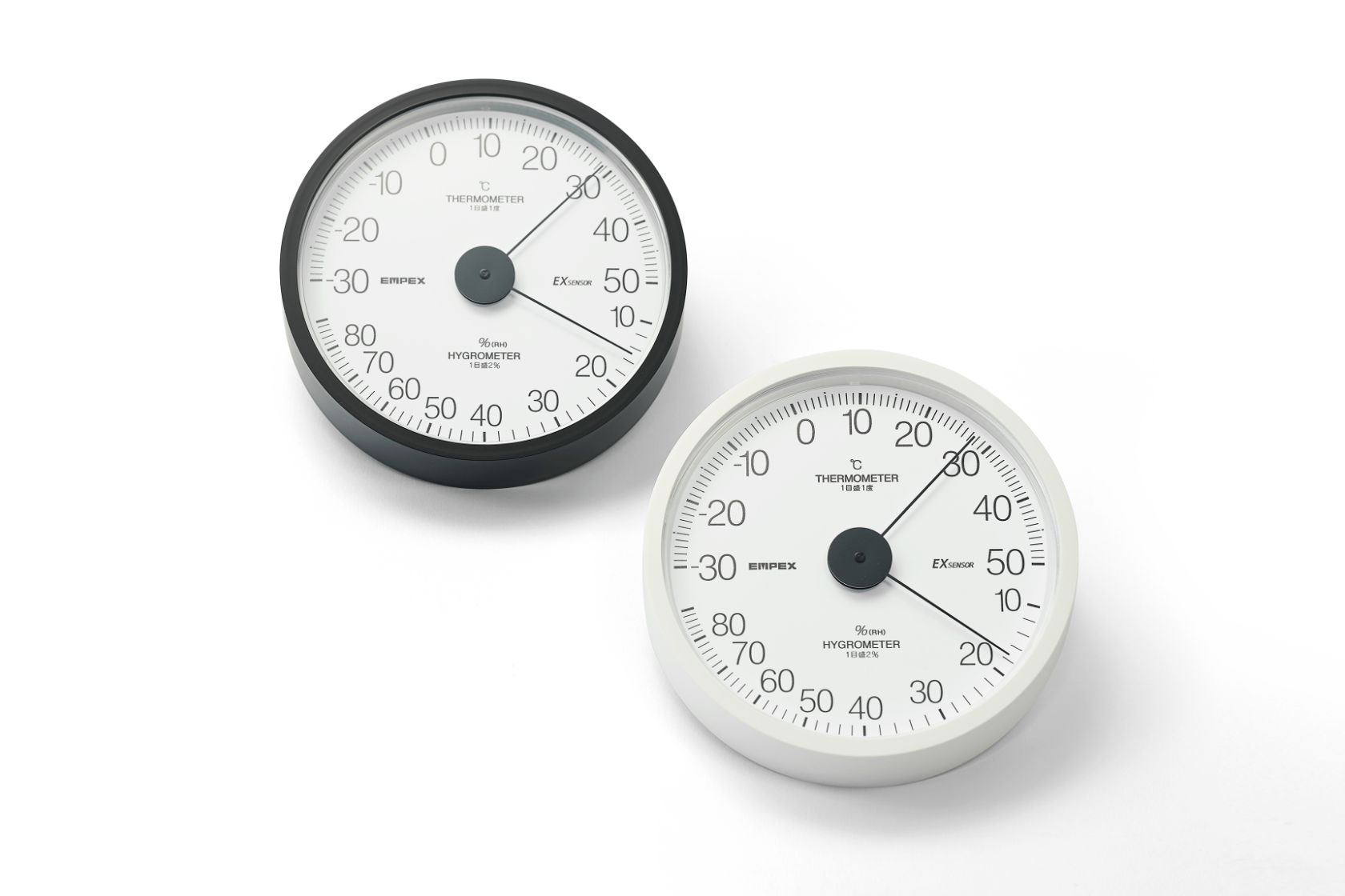 シンプルで視認性も高く、質感と共に完成度の高い温度・湿度計である。専門メーカーとして古くから気象計を作り続けているメーカーならではの信頼感が、その形にも表れている。