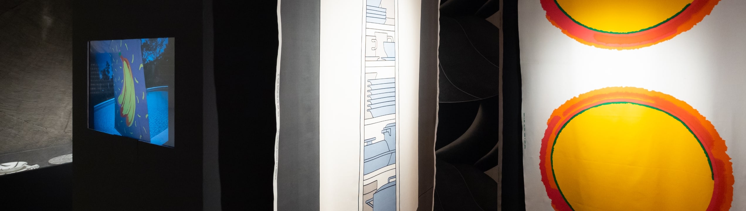 京都西陣のDNAを根っこに持ちながら鮮烈な色彩や多彩なパターンのテキスタイルを次々と生み出し刺激と感動を与え続けた人。自らのデザインを、表層(サーフェス)のデザインと捉え、日常のテキスタイルに留まらず、空間との関係性に踏み込んだデザインや現代アートへと交差しながら、1900年代後半の熱い時代を駆け抜けて日本のテキスタイルデザインを革新し発展させた孤高の先駆者、粟辻博の小さなスペースには収まらない回顧展です。
