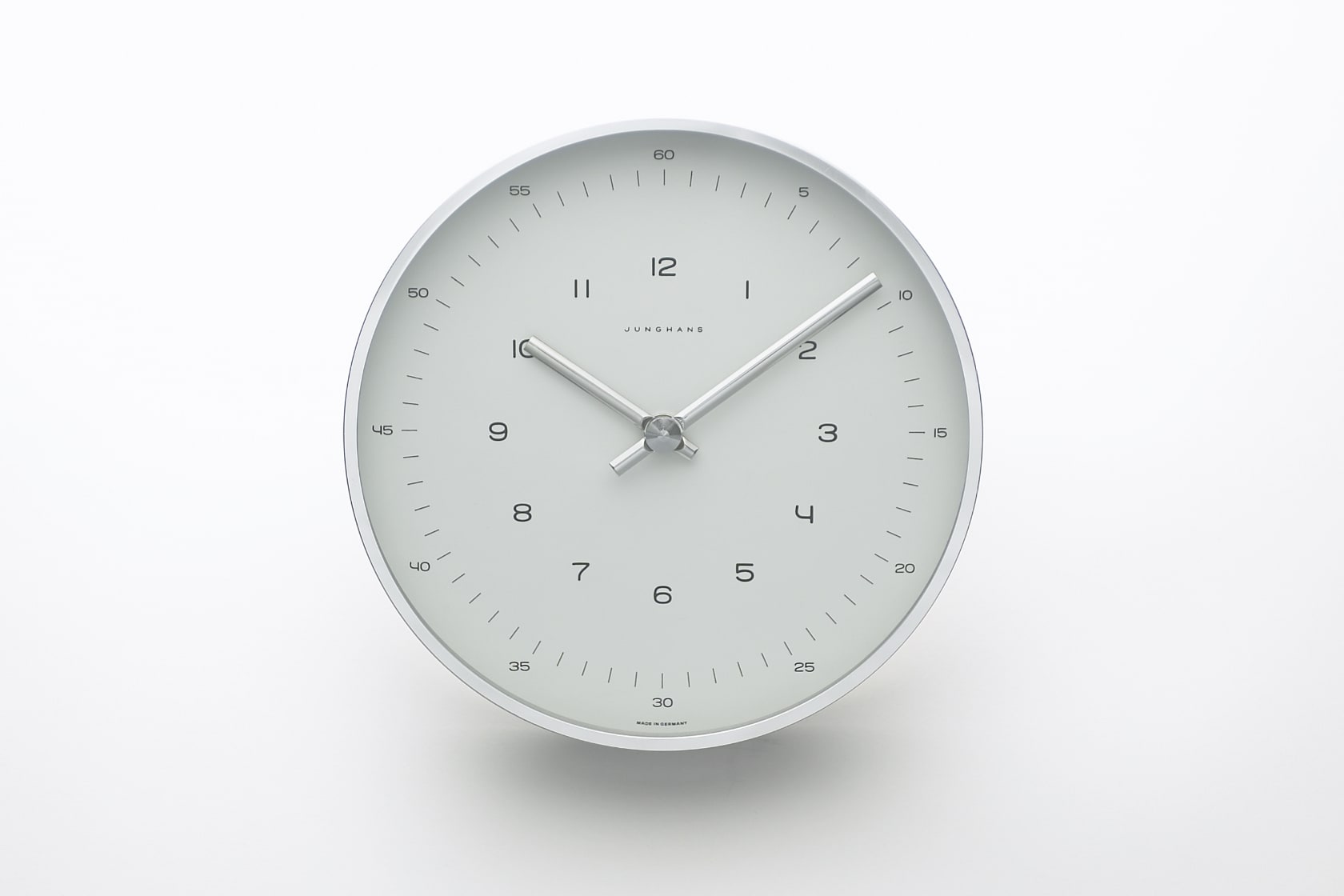 バウハウス最後の巨匠といわれたマックス・ビルが1957年にデザインしたウォールクロックである。建築から彫刻、ポスターに至るまで多岐にわたる分野で才能を発揮したビルだが、そのデザインは常に的確で洗練されたものであった。 モダンデザインの中に永遠性を追求したビルの生き方がこの時計にも見事に反映されている。 岩崎信治