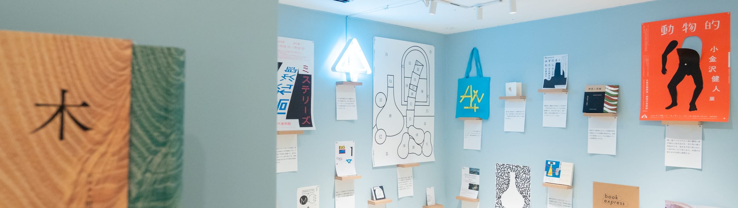 本展は、そんな菊地氏が「起点のように見えるアイデアは大抵作業の後半で発見される」という視点のもと選んだ、多数のグラフィックやプロダクト、制作過程のサンプルなどを言葉と“対”にして展示します。会場の壁面全面に展開されるインスタレーションは、菊地敦己の世界観を表出する一つの作品とも捉えることが出来るかもしれません。ぜひご高覧くださいますようお願いいたします。