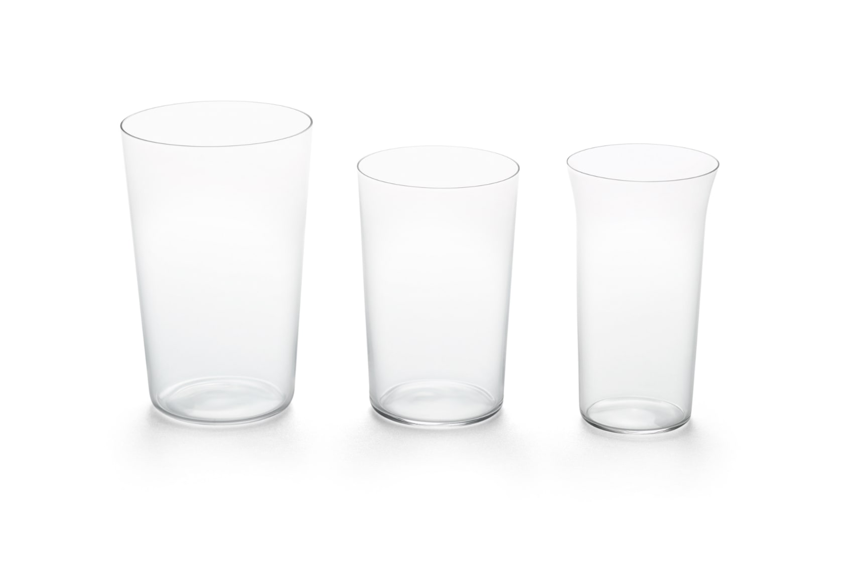 「自分が気持ちのいい形を作っただけだから、説明なんてないよ。」この商品のコンセプトを聞きに、東京・湯島にお邪魔した際のコメント。この商品の開発者であり、社長の木村さん。直感でのものづくりの結果、問屋も作り手も、そのロングライフな大きな流れを作り出し、まさに不動の商品となっている。底の仕上げにゆるやかな曲面を持つ「コバ磨き」を施したこのグラス。「新商品を毎年考えなくてもいいように真似しやすい、なんてことのない形にした」という木村さん。トレンドを追わない姿勢によって誕生したこのグラスは、飲み物をおいしく際立たせる名脇役として、ロングランを続けている。