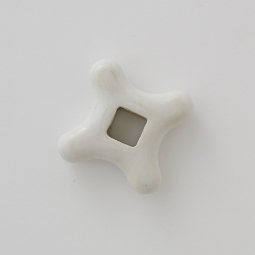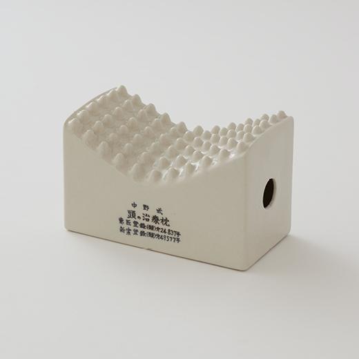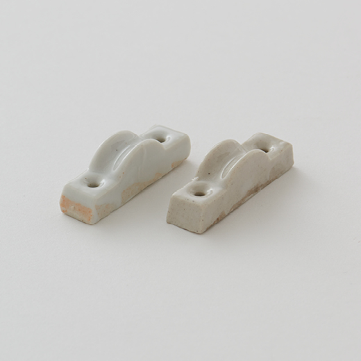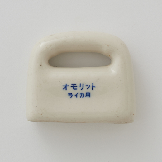 昭和の匂いのする部品陶器の数々は、陶芸作品とは異なる懐かしいかたちやテクスチャーを持っていて、コレクションアイテムとしても注目を集めはじめています。それは凸凹のついた頭の治療用まくらであり、水道の把手であり、コンセントタップであり、スイッチの土台です。あるいは、漏斗とおぼしきものや、テープカッター、壁にネジで取り付ける式の小さなフック、果てはトイレットペーパーのホルダーまであります。