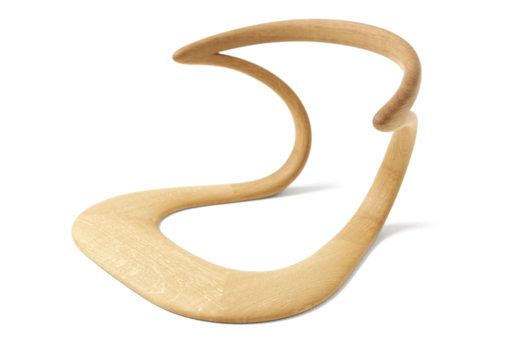 自分で使う家具として曲げ木の技術を生かして制作した。 我が家の書斎は畳敷きだが掘りごたつのように机の下に足をおろして腰掛ける。長時間の仕事には腰のサポートが不可欠で外骨格のような椅子を作った。面で遮らない存在感と、座った時の座面と体のフィット感が特徴である。 原研哉 材質=ナラ サイズ=W470×D455×H275 ◎この商品は受注にて承ります(納期約2ヵ月)